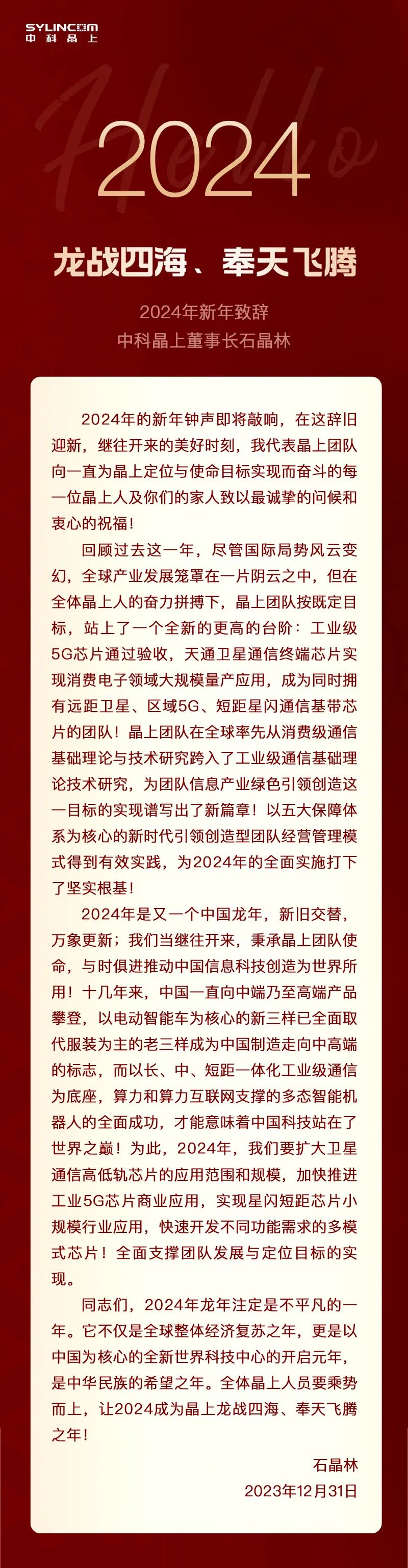 2024年新年致辞:龙战四海,,奉天飞腾